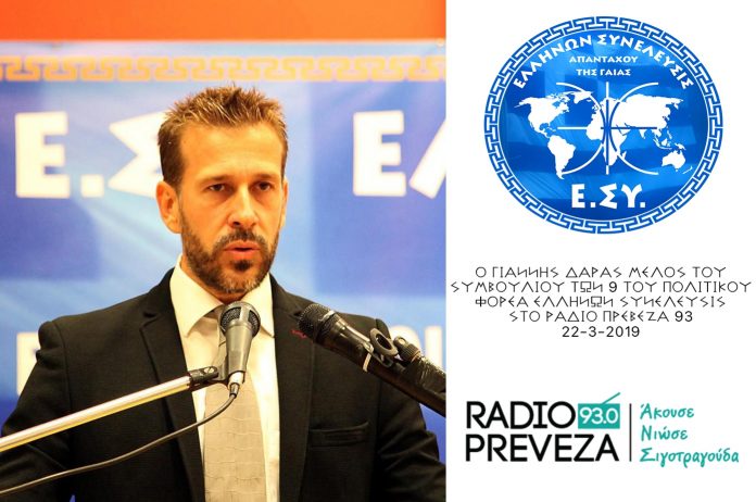 Ο ΓΙΑΝΝΗΣ ΔΑΡΑΣ ΜΕΛΟΣ ΤΟΥ ΣΥΜΒΟΥΛΙΟΥ ΤΩΝ 9 ΚΑΙ ΕΚΠΡΟΣΩΠΟΣ ΤΥΠΟΥ ΤΟΥ ΠΟΛΙΤΙΚΟΥ ΦΟΡΕΑ ΕΛΛΗΝΩΝ ΣΥΝΕΛΕΥΣΙΣ ΣΤΟ ΡΑΔΙΟ ΠΡΕΒΕΖΑ 93FM 22-3-2019